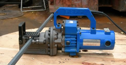 A series of Electric, Self-Contained Hydraulic Bar cutting tools for a variety of sizes. Require 110V Single Phase Power.