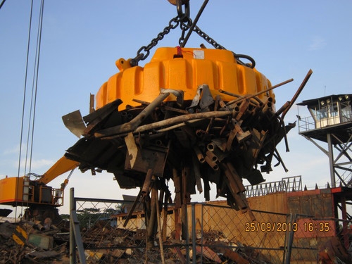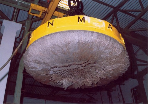 The CANMAG Round Scrap Magnets are incredibly robust heavy duty deep field handling magnets manufactured with a cast steel shell, manganese steel hot work bottom plate and ribbing for extra protection. Specifically designed for severe mill service applications.
